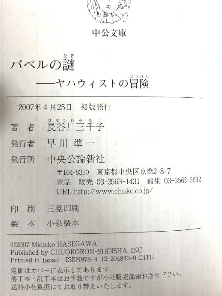 バベルの謎: ヤハウィストの冒険 (中公文庫 は 57-1) 中央公論新社 長谷川 三千子