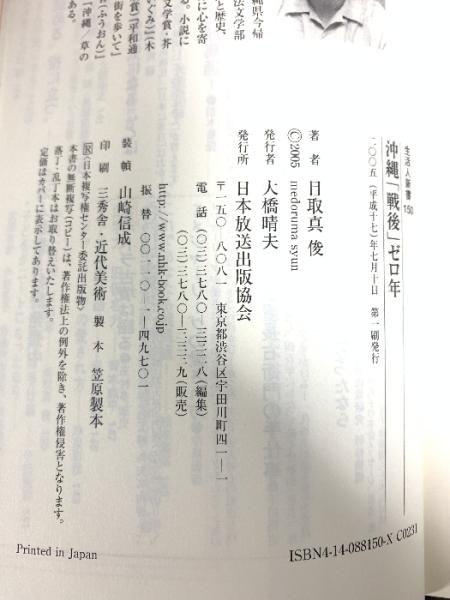 沖縄「戦後」ゼロ年 (生活人新書) NHK出版 目取真 俊