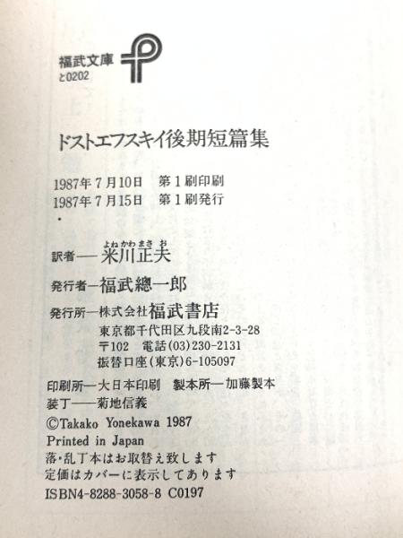 ドストエフスキイ後期短篇集 (福武文庫 と 202) ベネッセコーポレーション ドストエフスキイ