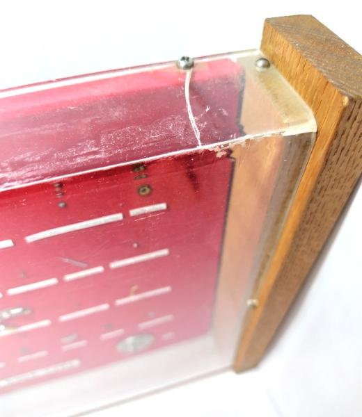 ・アクリルの右上部、ネジ部分から全面の角にヒビ割れあり。接着剤にて補修あり。