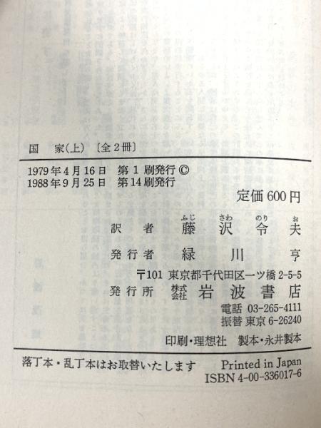 国家 上 (岩波文庫 青 601-7) 岩波書店 プラトン