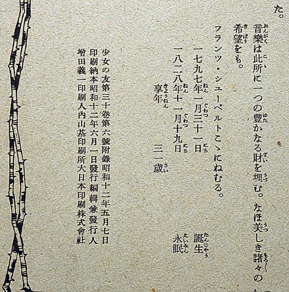 シューベルト物語 中原淳一装画 少女の友付録 昭和12年6月
