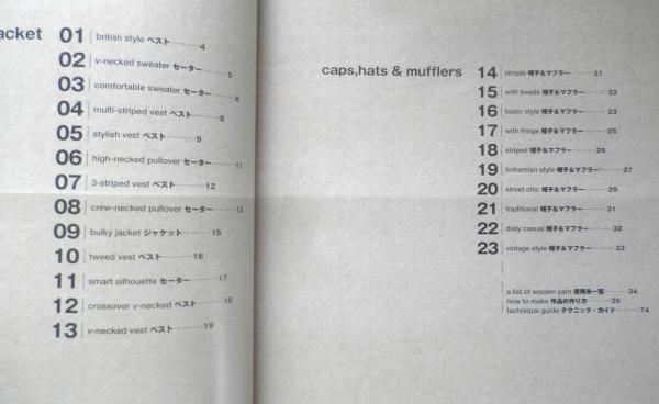 ベスト セーター ジャケット 帽子 マフラー 使用糸一覧 作品の作り方 テクニック・ガイド