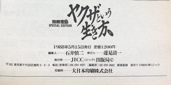 ヤクザという生き方2 別冊宝島 1988年5月 JICC出版局