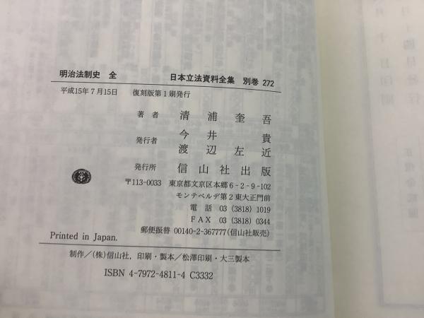 【除籍本】復刻版 日本立法資料全集 272 明治法制史 全