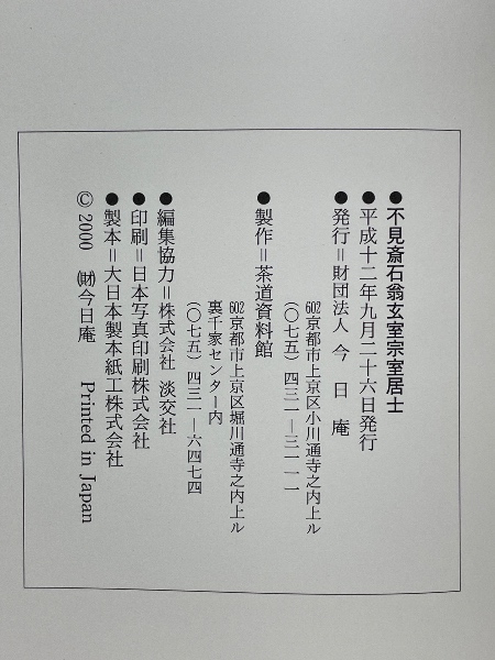 不見斎石翁玄室宗室居士 二百回忌記念