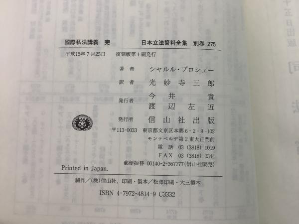 【除籍本】復刻版 日本立法資料全集 別巻 275 国際私法講義