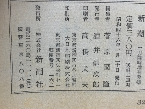 新潮1971年1月臨時増刊 三島由紀夫読本