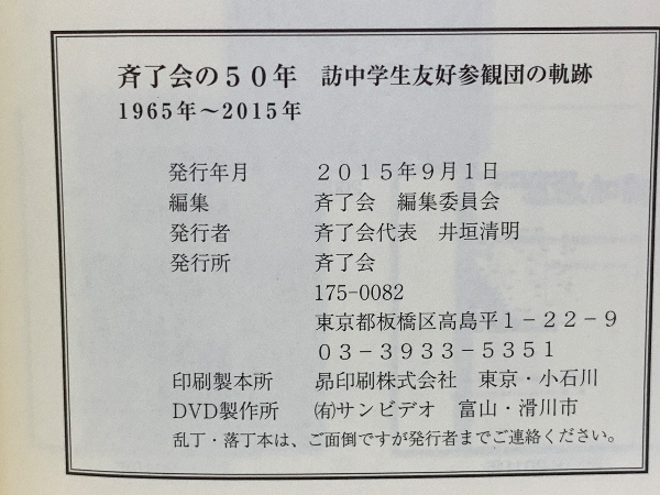 斉了会の50年 訪中学生友好参観団の軌跡 1965年-2015年