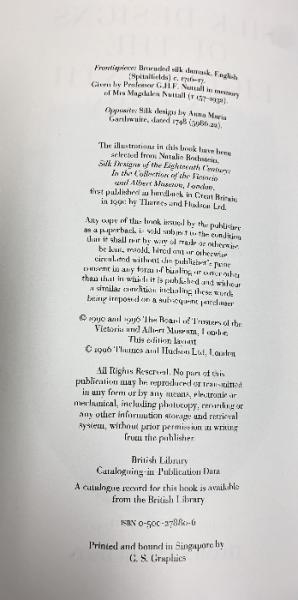 【洋書】【図録】Clare Browne SILK DESIGNS OF THE EIGHTEENTH CENTURY Thames and HUDSON 1996