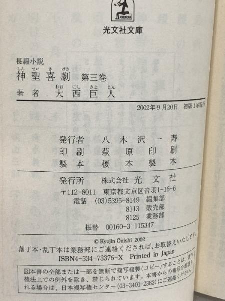 神聖喜劇 (第3巻) 光文社 大西 巨人 長編小説 光文社文庫