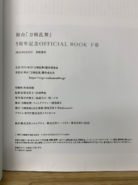舞台『刀剣乱舞台 5周年記念OFFICIAL BOOK 上下巻+オフショット集