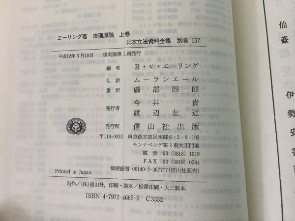 【除籍本】復刻版 日本立法資料全集 別巻 157 法理原論 上巻