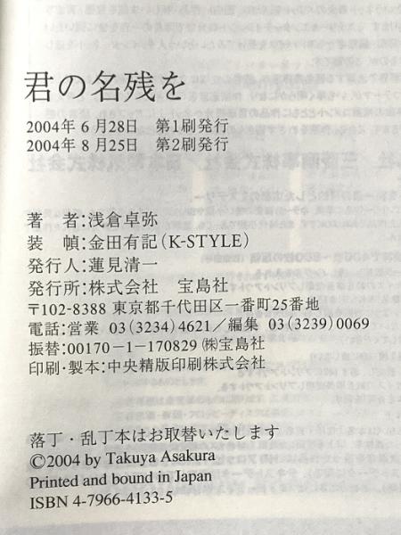 君の名残を 宝島社 浅倉 卓弥