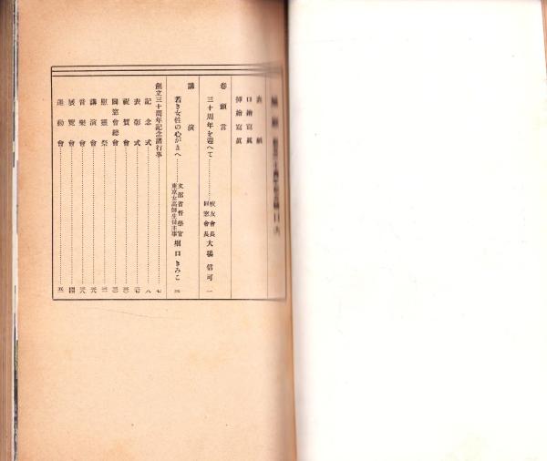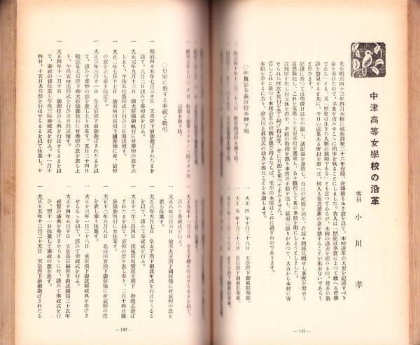 • 著者 〈創立30周年記念諸行事、野間海浜教授の記、中津高等女学校の沿革 39頁、同窓会館兼小講堂の確立と諸事業日記抄録、同窓会記事、校友会記事ほか〉