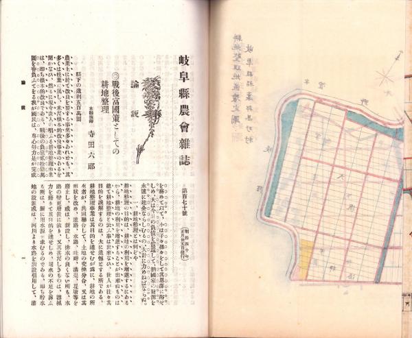 • 解説 A5判、本文58頁、折込図2枚(岐阜県稲葉郡黒野村 耕地整理地区原形図/同耕地整理地区予定図)、中央折れ