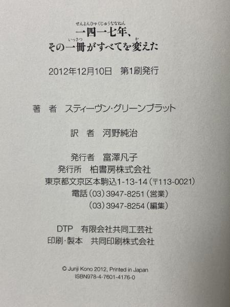 一四一七年、その一冊がすべてを変えた 柏書房 スティーヴン グリーンブラット