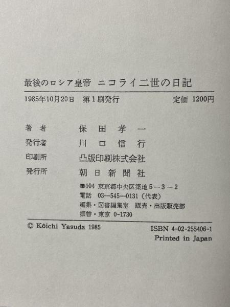最後のロシア皇帝ニコライ二世の日記 朝日新聞出版 保田 孝一