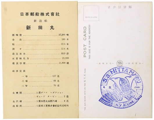 【絵葉書】新田丸就航記念