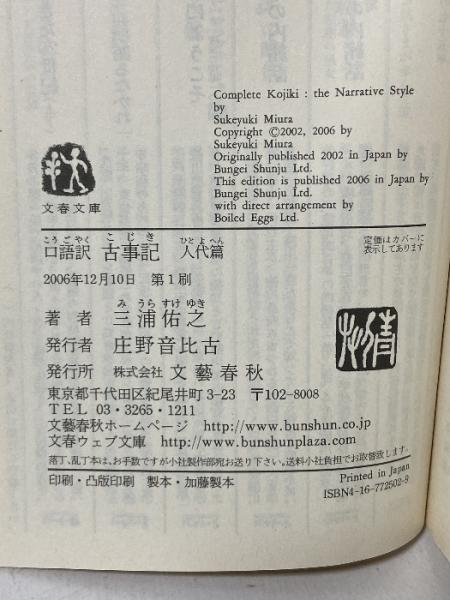 口語訳 古事記 人代篇 (文春文庫 み 32-2) 文藝春秋 三浦 佑之