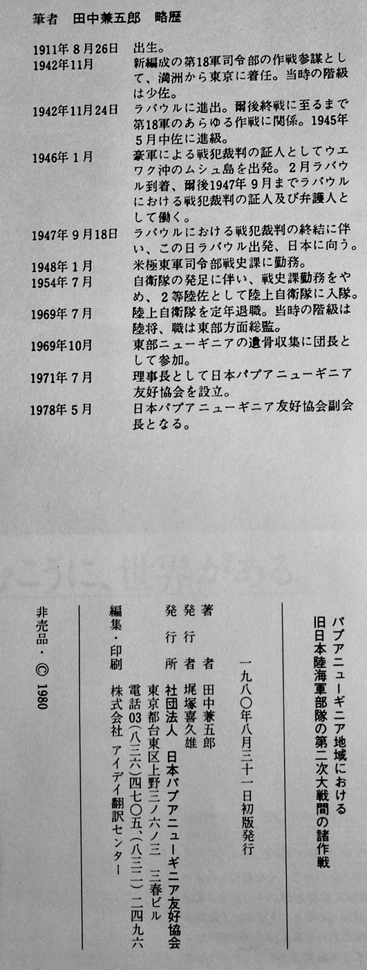 パプアニューギニア地域における旧日本陸海軍部隊の第二次大戦間の諸作戦 田中兼五郎著 非売 1980年