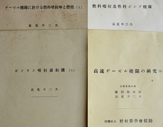 • 解説 燃料噴射及燃料ポンプ概観 昭12/ガソリン噴射発動機⑴ 昭16/高速ヂーゼル機関の研究⑴ 昭13/ヂーゼル機関に於ける燃料噴射率と燃料⑴⑵ 昭15/大豆油を燃料としたヂーゼル機関の性能 昭14/吸込弁及び排気弁の大きさに対する一考察 昭13/新捩り動力計 昭10/排気ガスの濃度測定 昭14/円形翼列ノ近似計算図2葉