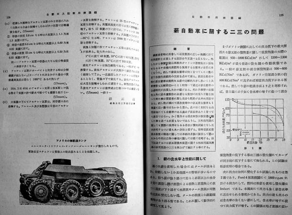 • 解説 航空用機関編/国防と航空発動機工業の使命/技術的に見たる我國航空工業の問題/自動車及戦車用機関編/大陸用自働車に要求される設計上の問題/薪自動車に関する二三の問題/伊太利に於ける戦時自動車対策/車輌用機関編/艦船用機関編/船用内燃機関の故障と対策/燃料及潤滑油編/材料及工具工作機械編/他 26×19㎝カバ痛み408p+巻末広告20p