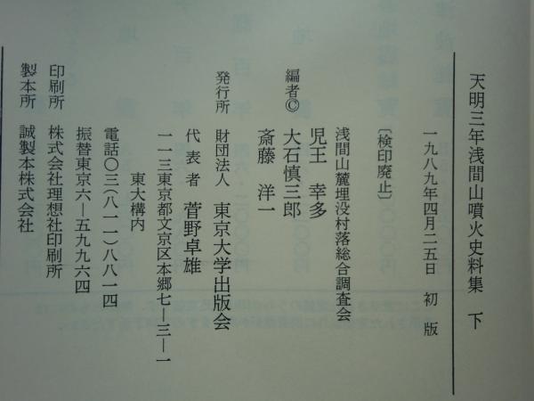 天明三年浅間山噴火史料集 上巻・下巻 2冊揃