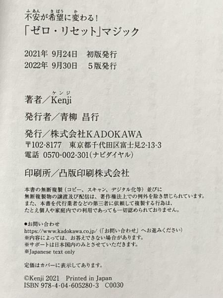 不安が希望に変わる! 「ゼロ・リセット」マジック KADOKAWA Kenji
