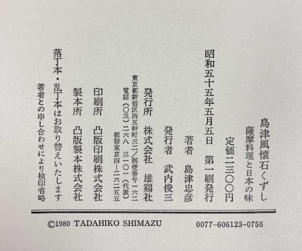 島津風懐石くずし―薩摩料理と日本の味 雄鶏社 島津 忠彦