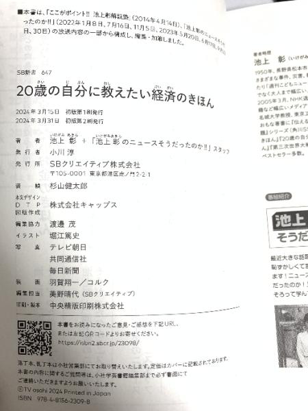 20歳の自分に教えたい経済のきほん (SB新書 647) SBクリエイティブ 池上彰+「池上彰のニュースそうだったのか!!」スタッフ