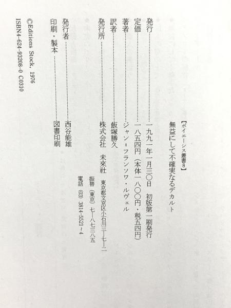 無益にして不確実なるデカルト (ポイエーシス叢書 8) 未来社 飯塚 勝久