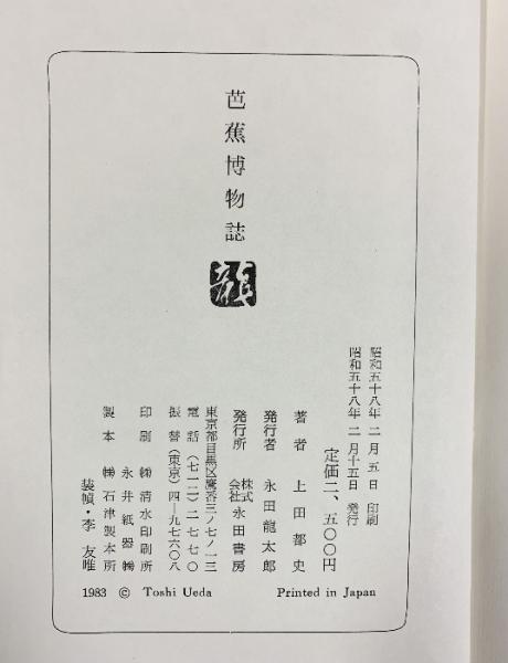 芭蕉博物誌 上田都史 永田書房 昭和58年