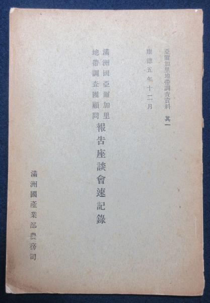 満州国亜爾加里地帯調査団顧問 報告座談会速記録