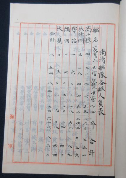 • 解説 海軍用箋 15丁 写本 南清艦隊編制以後ノ状況、高等官名簿、各艦人員表他