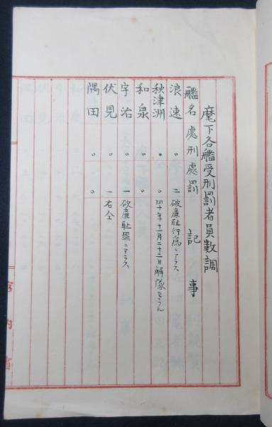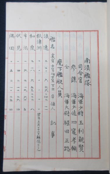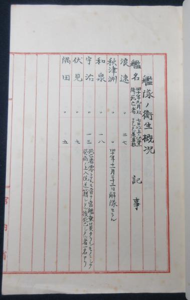 • 解説 宮内省用箋 12丁 写本 艦隊ノ衛生概況、麾下各艦受刑罰者員数調