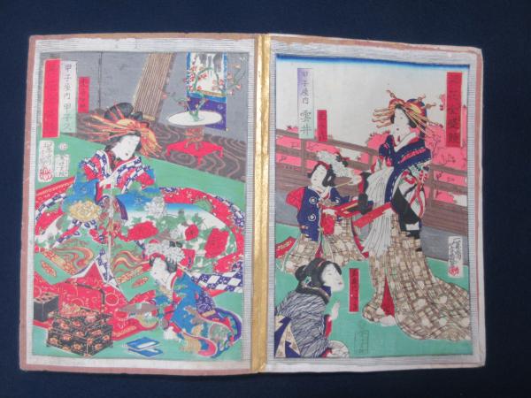 • 解説 54枚貼 見立多以尽(月岡芳年画)、名所三十六戯撰(昇斎一景画)、東京開化名勝記、奥羽御巡幸図会(広重画)、鹿児嶋新誌(豊原国周画)、東海道一眼千両(国周画)、見立富士拾六景(豊原国周画)、鹿児嶋英勇伝(清親画)、開化三十六会席下谷松源楼(豊原国周画)、