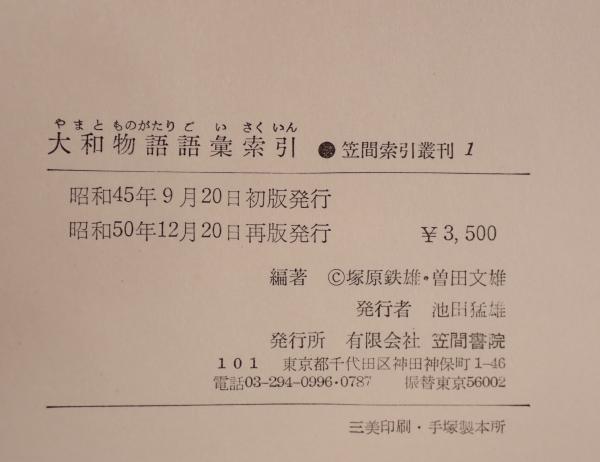 大和物語語彙索引 <笠間索引叢刊 大和物語 1> 再版