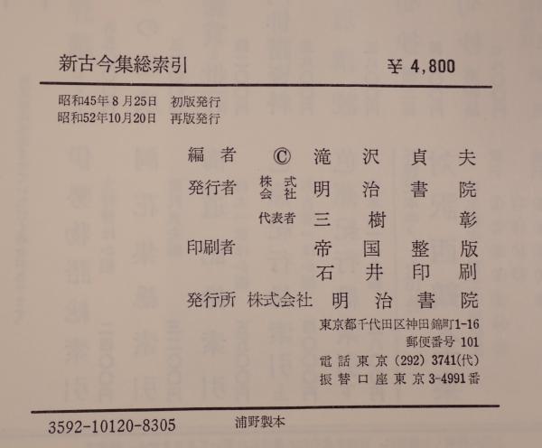 新古今集総索引 <新古今和歌集> 再版