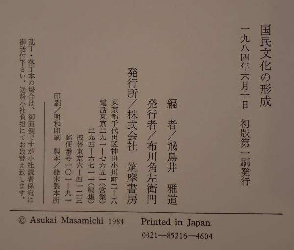 国民文化の形成 初版第1刷