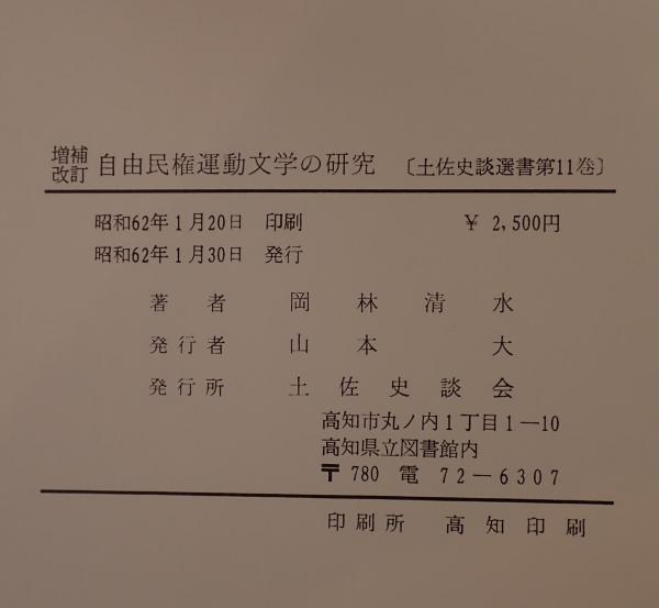 自由民権運動文学の研究 <土佐史談選書 第11巻> 増補改訂