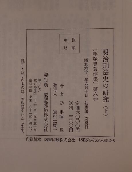 手塚豊著作集 第6巻 (明治刑法史の研究 下) 初版第1刷