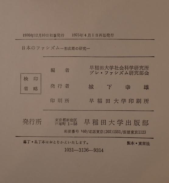 • 著者 早稲田大学社会科学研究所プレ・ファシズム研究部会 編