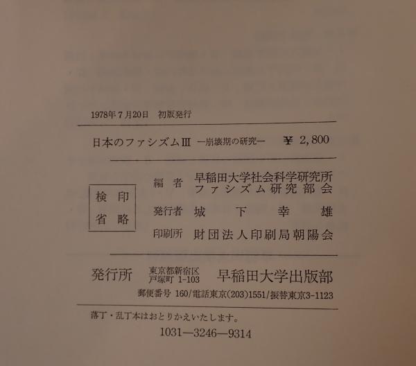 日本のファシズム : 形成期の研究 3冊揃え I・II・III 再版、初版、初版
