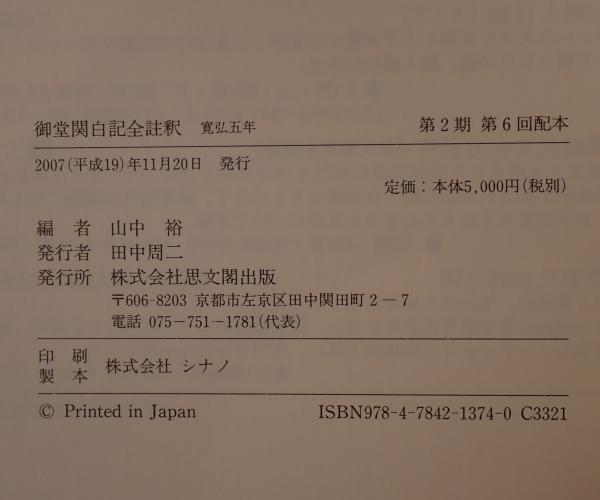 御堂関白記全註釈 寛弘5年 <御堂関白記>