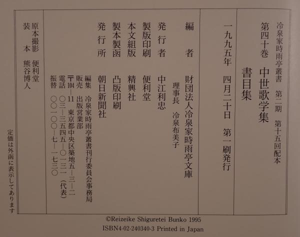 中世歌学集 書目集 <冷泉家時雨亭叢書 第40巻> 第1刷