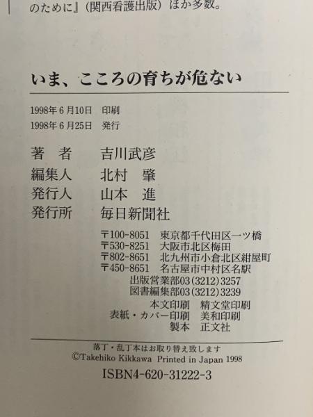 いま、こころの育ちが危ない 毎日新聞出版 吉川 武彦