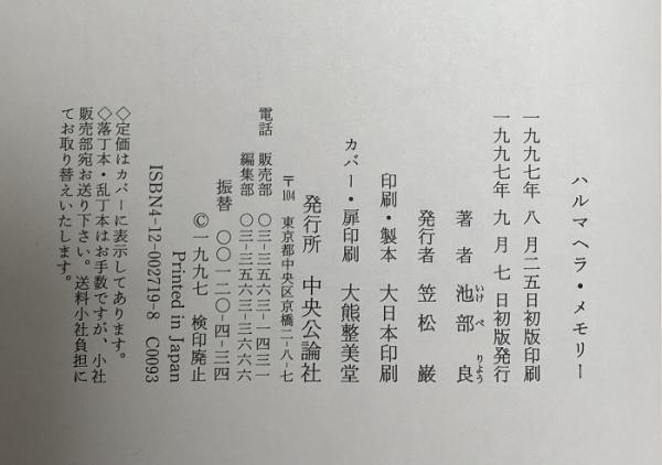 ハルマヘラ・メモリー 中央公論新社 池部 良