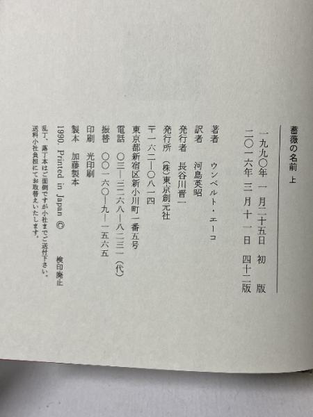 薔薇の名前〈上〉 東京創元社 ウンベルト エーコ