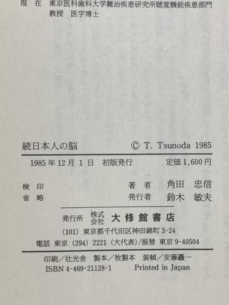 続 日本人の脳 : その特殊性と普遍性 大修館書店 角田 忠信